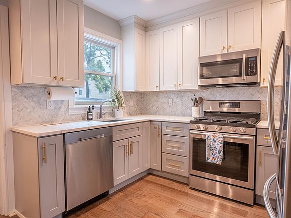 Welcome to this beautiful, newly renovated 3-bedroom, 2-bathroom home in Jersey City Heights, one block away from Riverview Park . This condo features a modern kitchen with high-quality finishes - quartz countertops, Samsung stainless steel appliances, and stylish shaker cabinets. The open layout includes a spacious living area with hardwood floors throughout, recessed lighting, and sound insulation between floors for added peace and quiet. The expansive primary bedroom boasts a private balcony, a luxurious updated ensuite bathroom with standing shower, and a walk-in closet with a washer and dryer. Both additional bedrooms have special details like plantation shutters and a cozy reading nook. The second bathroom has upgraded finishes, and a soaking tub. Sellers are able to transfer a rental parking spot nearby.