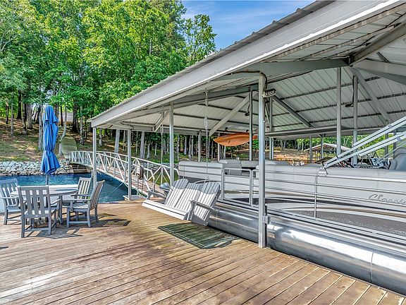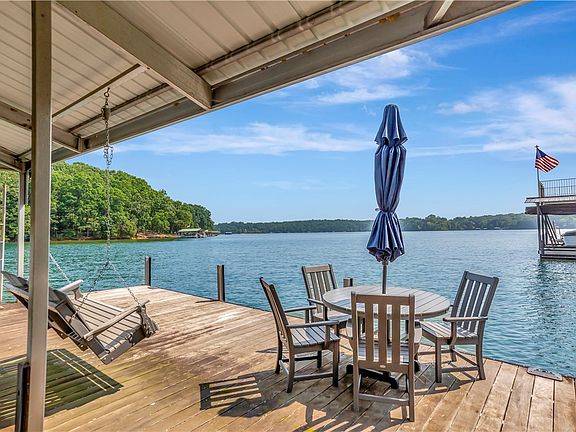 Perfect lake house views! Windows align the whole backside of the house with a beautiful lake panorama. An extensive covered porch is ideal for sipping coffee in the morning and an additional grilling patio sits on a gorgeous lot. This is the perfect area to gather with friends and family for a drink or barbecue. A short walk to your impressive max size,  double slip dock with hip roof, water, and power, two boat lifts, multiple storage boxes, swing, 60ft arched walkway has everything you need for lake day fun plus, the dock sits on deep water. This 3 bedroom 3 ½ bath home Craftsman style home exudes character and summons you in with stamped concrete at the entrance of the drive up to your huge front lawn and friendly, inviting front porch. Your lake view is evident as soon as you step into the home and walk down the hallway to your dining area and lovely step-down cozy living room all with the splendid lake views. The living room area has a spectacular stone fireplace and striking wood built in bookcases on each side. The large dining area leads into your attractive kitchen with cream countertops, stained warm wood cabinetry, stainless steel appliances, and plenty of storage. Including large butler’s pantry and laundry off the kitchen with a lake view as well. There are three large bedrooms one on the main and two upstairs. The finished basement has tons of space and storage. There is room for an additional bedroom, workspace, or workout room. There is even an area that can be easily converted to a kitchen. There are endless options for this incredible space for guests, in-laws or a college aged child as there is a separate entrance. This location is ideal for boat rides to Portman Marina and the Galley restaurant, and it is close to 85 which makes getting to Anderson, Clemson, and Greenville a breeze. This may just be one of the most desired locations on the lake.