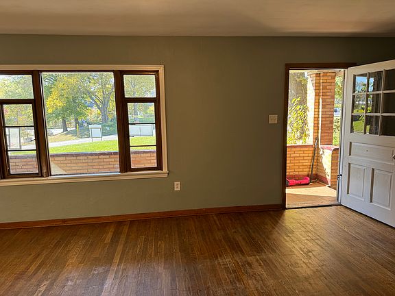 this is a first floor, very large three bedroom apartment with one bathroom and a basement for storage It includes a covered front porch and a back deck, street parking and laundry hook ups The layout is as follows, a large living room/dining room area on the first floor. Two bedrooms, kitchen and bathroom on the first floor. One additional bedroom on the second floor. this apartment cost $1050 per month plus all utilities. Applications can be found on our website at lockandkeypropertiesllc .org One year lease, tenant pays all utilities