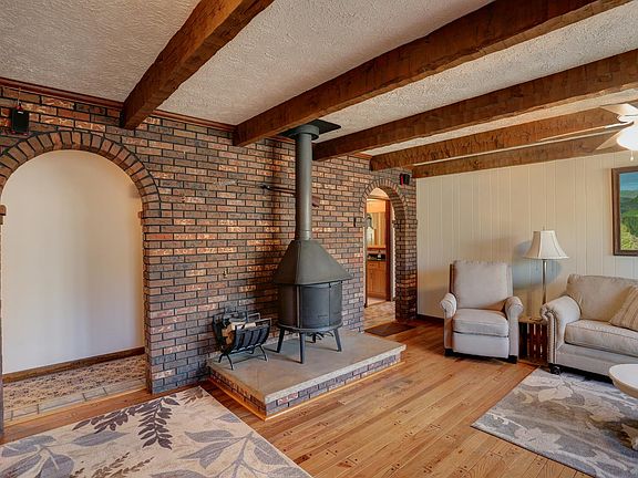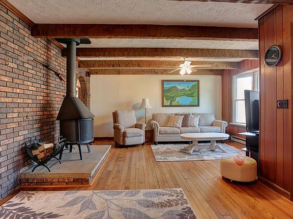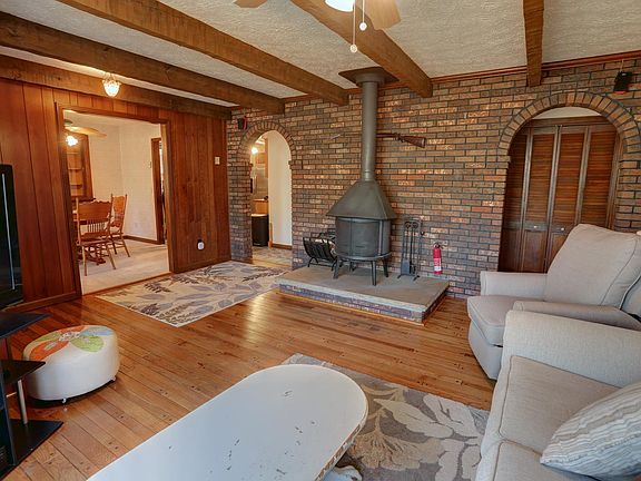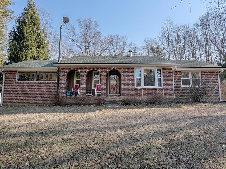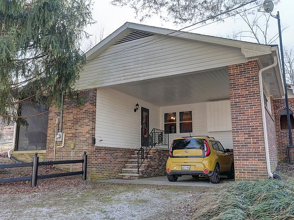 This is it! Your own piece of paradise! This all brick home sits off the road on 5+ acres among many mature trees & perennials. One level ranch. Connect with nature on the covered front porch or in the huge screened- in room off back. Outdoor features include heated workshop, party pavilion/carport, chicken coop & heated/cooled artist studio.