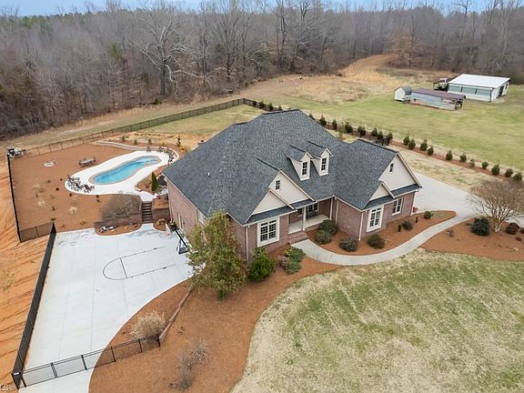 This Spacious custom built home has it all!! Granite Countertops, Custom Cabinetry, Formal Dining Room, Great Room with Stone Fireplace. Large Primary Suite on the Main with His and Hers closets. Primary Bath has a Large Walk-In Shower & Garden Tub. Two additional bedrooms on the Main level with large closets. Office or sitting room on the main level as well as a Large Laundry room with Large Sink. Home has beautiful hardwood floors and lovely Moldings; Lots of storage and Oversized attached garage. Step outside the Great Room to a backyard oasis complete with fenced in yard with a new heated saltwater pool and attached hot tub. Relax by the outdoor fireplace and enjoy the serenity. Finished Basement has a Bonus Room, Recreational room, second kitchen with large island, Full bath and sitting/Office area. Basketball court at lower entrance of basement. Plumbing and electrical has been roughed in for a pool house. Minutes to 85. This home has everything and a must to see.