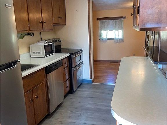 Three bedroom brick ranch lovingly maintained by owner of 68 years --- Spacious living room with hardwood floors, fully equipped galley kitchen - stainless steel refrigerator is 3 years old - Large dining room has hardwood floors and can also be used as a family room/den. Side entry to kitchen has newer steel door and storm door. Hardwood floors in 3 bedrooms - Bedroom #3 has quaint built-ins, vanity, drawers, cupboards - Versa-Lok driveway retaining wall new in 2020 -- Furnace/air conditioning, hot water heater installed in 2023 --