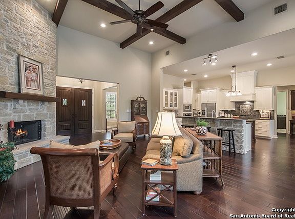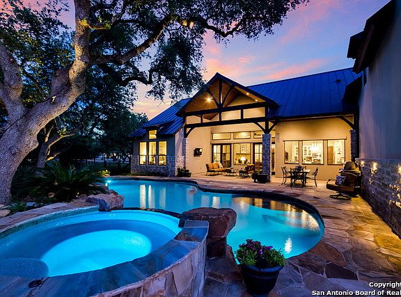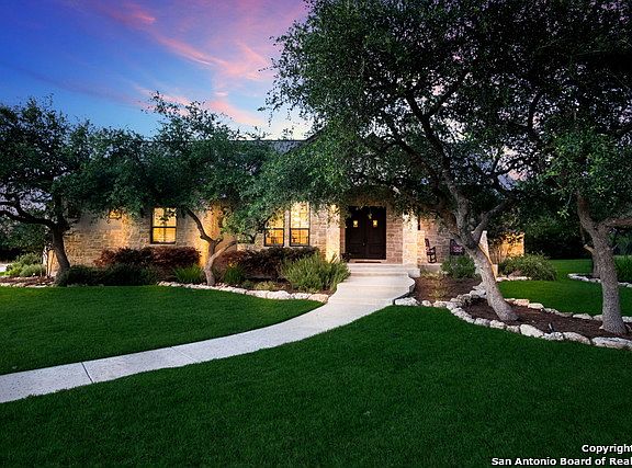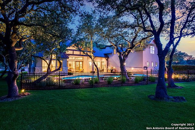Hill Country elegance in Fair Oaks Ranch!Stunning Mattern & Fitzgerald custom one story home located in Stone Creek Ranch w/beautiful pool,spa & amazing outdoor living.Quality features & design including upstairs bonus room,hardwood,ceramic & stone flooring,custom cabinets,granite counters,stainless appliances,stone accents,3-car garage,walk-in attic storage,high ceilings & more. Relax in the private master suite overlooking mature oaks & impeccable landscape w/lighting.Outstanding location & Boerne Schools