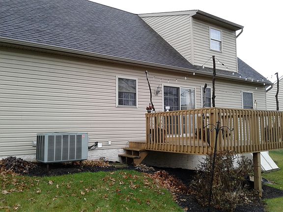 Beautiful cape cod style home with two-car attached garage. Quiet location on a dead-end street. First floor includes a kitchen and living room, 2 bedrooms and a full bath. The second floor has two bedrooms, a full bath, and a bonus room/optional bedroom. The basement has a large finished living area, laundry, and storage room. Other features include central air, electric heat pump, electric baseboard heat in the basement, central vacuum, public water and sewer, water treatment system, 10x10 wood deck, dishwasher, range, microwave, refrigerator, and 8’x12’ shed.