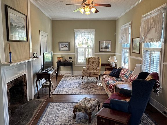 A BUNGALOW/COTTAGE STYLE HOME THAT EXUDES CHARM, WARMTH AND SO MUCH MORE AND IS ONLY 3 BLOCKS FROM THE WATERFRONT. Hardwood floors throughout, 9+ ft. ceilings in a portion of the home, two fireplaces, and two nice size screened porches are just a few of the special features this home offers. There are two bedrooms three baths on the main level and one bedroom upstairs. The large front porch, is a great place with the shade from the beautiful trees, to enjoy a drink and peaceful afternoon.