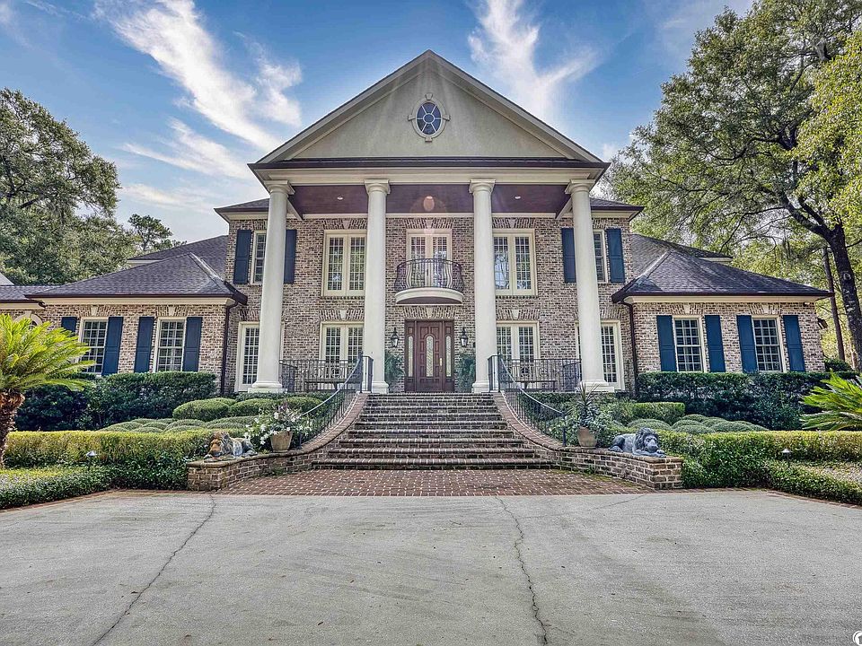 Welcome to 404 Rice Bluff Road, located in the exclusive riverside community of Prince George. Adorned with moss draped live oaks, this prestigious estate home exudes the feeling of classical southern comfort. As soon as you turn down the long driveway that leads to this traditional home you begin to relax, enjoying the natural beauty that engulfs this over 12-acre property. Notice the elevated quality in the details such as the hand-made Old Savannah brick on the exterior, large stone columns framing the front entrance and back veranda, Brazilian cherry wood floors combined with Travertine tile throughout the interior, providing warmth and timeless quality. Entertain family and friends in your well- appointed gourmet kitchen featuring Viking and Bosch appliances. Serve guests indoors or outdoors depending on the weather. There is a large area for a kitchen table or room to dine alfresco on the back porch. If you are preparing for a special occasion, seat the family in the spacious formal dining room and add to the ambience by lighting a fire! Continue entertaining your guests in the formal living room, casual den, the sunroom or out around the pool. The options are endless. On the main level you will find a spacious master bedroom with access to the back porch. There is also a sizeable room that can be used as a sitting area, library, office or home gym. Between these two spaces is a bathroom featuring his and hers vanities, his and hers walk-in closets, his and hers water closets, a soaking tub and a glass steam shower. Follow the grand staircase to the second floor where you will find three additional bedrooms. Two share an adjoining bathroom while the third has an ensuite bathroom and walk-in closet. Two of these bedrooms have private patios overlooking the pool. We aren’t done yet! There is also a cozy theater room on the main floor for movie nights and a bonus room over the two-car garage. Beyond the landscaped pool is a path to a large personal tool shop that could be turned into a man cave or she shed! If you have children or grandchildren, you will be delighted that the custom playhouse in the back yard conveys. Also conveying are all mirrors, light fixtures, chandeliers and window treatments. What else does Prince George have to offer? Enjoy boating via the ICW - leaving from your own private deeded 70' boat slip in the Prince George marina, or cross over to Prince George Ocean to enjoy private beach access and the clubhouse commons pool and amenity complex. It’s all a part of your Prince George community amenities. Feel as if you are miles away from everything, yet easily be in the center of it all – the Waccamaw River, the Atlantic Ocean, Pawleys Island and Georgetown! Minutes away from local shopping and fine dining, just 30 minutes from the attractions of Myrtle Beach and a little over an hour from historic Charleston. Prince George is renowned for its natural beauty, private beach/river access, and elegant amenities. Don’t miss your chance to own a piece of paradise in one of South Carolina’s most coveted coastal locations. If you are ready to make 404 Rice Bluff Road your new home, let me know and we will schedule your appointment to see this “hidden jewel” right away!