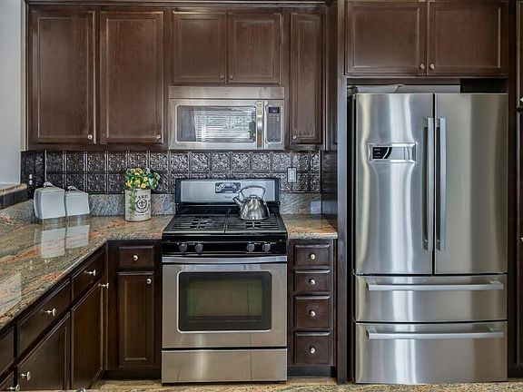 Desired home in Rivage with a great location backing to Greenbelt. The Matisse floor plan shows like new! Hardwood floors and crown molding greet you upon entering. The kitchen is a dream with granite counters, stainless steel appliances, and more! The master suite offers plenty of nature light and space. Relax on the enclosed patio. Complete with a finished garage with built-in wall cabinets. HURRY - this one won't last!