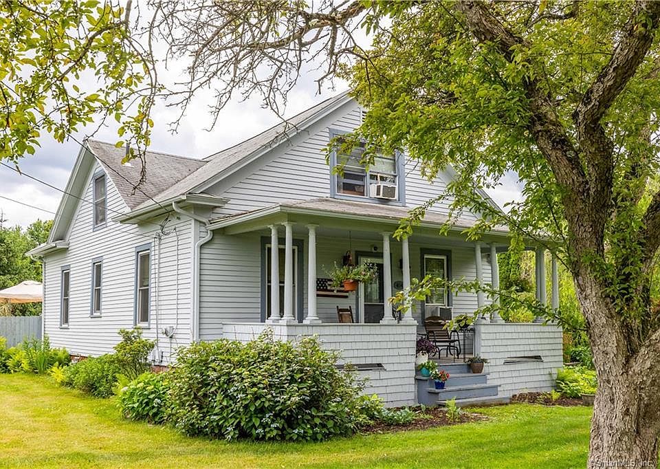 Charming Bungalow-style home in a quiet, country-like setting, yet close to many conveniences! This home is surrounded by a variety of beautifully landscaped perennials, shrubs and trees and welcomes you in, beginning with an incredibly charming front porch; you will surely enjoy spending your mornings here sipping your coffee or tea and quiet weekend afternoons reading or relaxing. Main floor offers a great open floorplan for entertaining, including a spacious living room with built-ins and kitchen with eating space, stainless steel appliances and white cabinetry. Sliders lead out to the back deck which overlooks a beautiful, private backyard. Enjoy hosting fun cookouts and outdoor gatherings with friends and family! Main floor also offers a bedroom and convenient half bath with laundry. 3 additional bedrooms and a spacious, remodeled full bath are located on the 2nd floor. Newer windows throughout the main level (2015). This home also has a full basement for storage, 2-car garage with new doors for covered parking and shed for storing lawn and garden equipment. Located across from open space, and close to local parks and kayak/canoe access point on the Farmington River. Easy access to I-91 with plenty of dining options close by. Don't miss this one!