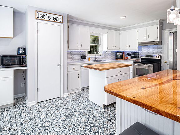 Adorable is the only way to describe this brick ranch. Remodeled from a duplex in 2020/2021. Three bedrooms two baths split plan. Features a dine in kitchen bar, den, office, laundry room, outside storage, tankless water heater, hardwoods and much more. Enjoy the extra under cabinet lighting, coffee station, built ins and treed lot. Additional features include hardwood floors, tile backsplash, accent lighting, dehumidifier, fenced back yard, outside shed (sold as is) and mature landscaping.