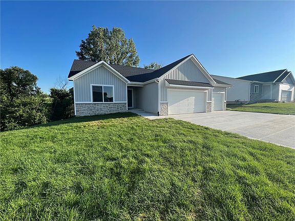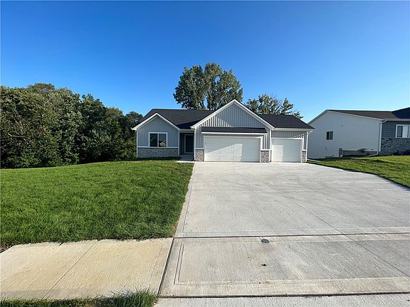 Move-In Ready! Brand new, completely finished, open ranch plan has: 4 Beds (1 non-conforming), 3 Baths, 2,345 finished SF, 3-car garage w/ openers, 10X12 deck w/ concrete patio under & a walk-out lot! As you walk in the home you will find vaulted ceilings in the main living area, electric fireplace, Waterproof LVP flooring in kitchen-living-baths-laundry, quartz countertops, painted cabinets, center island, spacious kitchen pantry & SS appliances w/ refrigerator. Owners suite is tucked away in back of home for privacy & includes tray ceiling, double vanity, shower, & walk-in closet. The front of the home has a nice sized guest bed, bath, & laundry room w/ washer & dryer included! Off the garage is a big drop zone w/ mud bench. Basement is finished & includes 2 beds (1 non-conforming), 1 bath, & living room w/ walk-out door to the back yard. Exterior features include no maintenance vinyl siding, 30 yr. shingles, stone, sodded yard, & mature trees in back yard-creating a private oasis. 1yr. builder warranty included. Photos online are of actual home. Use Preferred lender: Patrick Conway 515-229-1477 and get up to $2,000 in closing costs.