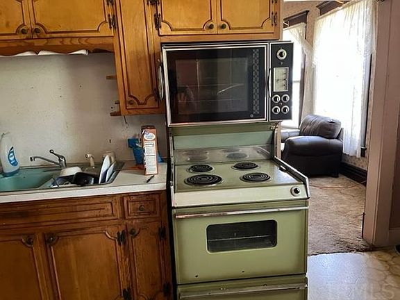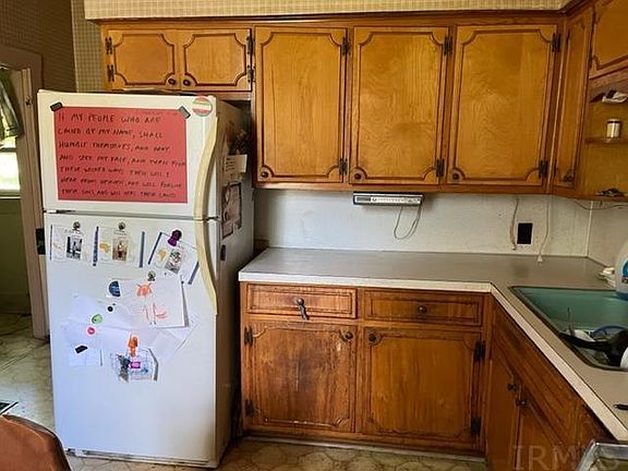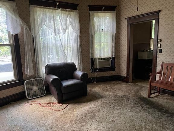Craftsman style fixer-upper. Home has 2 bedrooms and 1 bath. Home has a large dining room with a pocket door that goes into the living room. The living room is large but the seller has put all unwanted items in this space. The living room has a fireplace but the seller states it is defective. The bedrooms are roomy. The bath needs updating and has a tub but no shower. The kitchen is small but has an original built-in china cabinet.The sellers are leaving a electric stove, dryer, washer and window air conditioner in dining room.The large backyard has a 10x10 outbuilding.All items in the living room stays except the bicycle and the bird cage, aquarium and the boat in yard will go with the sellers.