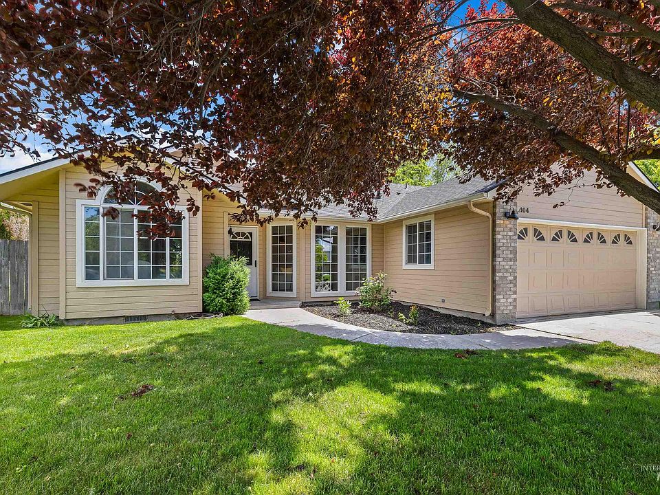 The perfect blend of aesthetics, privacy, affordability, and function are on display in this single level 3 Bed/2 Bath home in the desirable Mallard Landing subdivision! Tucked away from the street frontage on this unique lot, you are drawn into the open living space flooded with natural daylight and vaulted ceilings. The open living room flows into the dining space and kitchen – perfect for entertaining, but it also functions as a gathering space for the practical split bedroom layout. The Master Suite provides a full bath with dual vanities as well as a walk in closet! The large back yard is a retreat that provides privacy rarely seen in this price point as it backs to open space rather than neighbors. Boasting a fantastic central location to shopping, schools, I-84, and charming downtown Meridian! Other features include a new roof in 2021, new sprinklers, refinished kitchen countertops, new entry door, storage shed, and much more!
