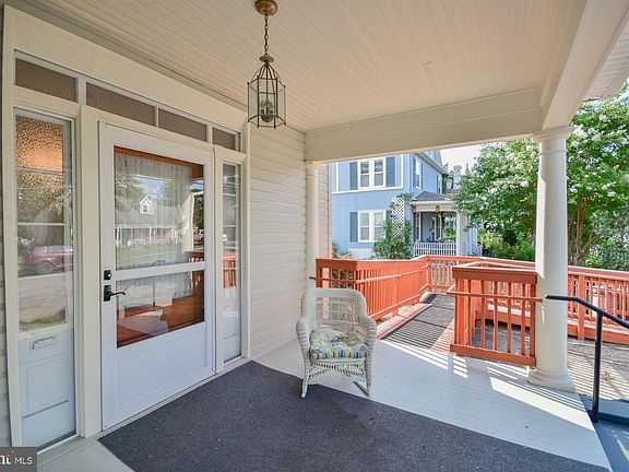 Welcome to yesteryear when homes were built sturdy and have unique qualities. Handmade spindles going up the staircase, crown molding and hardwood throughout, 9 foot ceilings and pocket doors. Great craftmanship with this beautiful Colonial with a wrap around porch within walking distance to the park and downtown. This home has 3 bedrooms, 1.5 baths. Living room with hardwood floors, crown molding,  9' ceilings  and a pocket door. Family room with crown molding, hardwood floors, 9' ceilings and a gas fireplace. Large country kitchen with pantry and a half bath. Laundry room has a door that leads to a large new deck and your park like setting fenced backyard with beautiful landscaping. A nice sized garage/ shed for storage. Upstairs there are 3 large bedrooms with hardwood floors and an extra room that was used as a walk-in cedar lined closet. One bedroom has access to a porch area that overlooks the backyard. There is extra storage in the floored attic (which could become additional living space) or the unfinished basement with a workshop. Enjoy life on your front porch or coffee on the deck overlooking your backyard.  A Must See!!