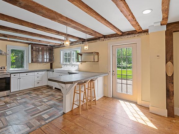 Freshley painted Apartment in two-unit house for rent. Minutes from the Wallis Sand Beach in Rye and short drive from downtown Portsmouth. The unit has lots of character and history yet updated to modern standards. It includes 3 Bed / 2 Bath. Primary bedroom newly renovated with two walk-in closets, private bath with clawfoot tub and stone shower. Charming kitchen includes exposed beams, farmhouse sink, concrete counters with eat-at kitchen, and pantry. Over 3 acres of outdoor exploration and fun including open lawn, woods with trails. Outbuilding/shed for lawn tools & outdoor toys. Many wonderful features and upgrades. Unit has washer and dryer. Small pets permitted.