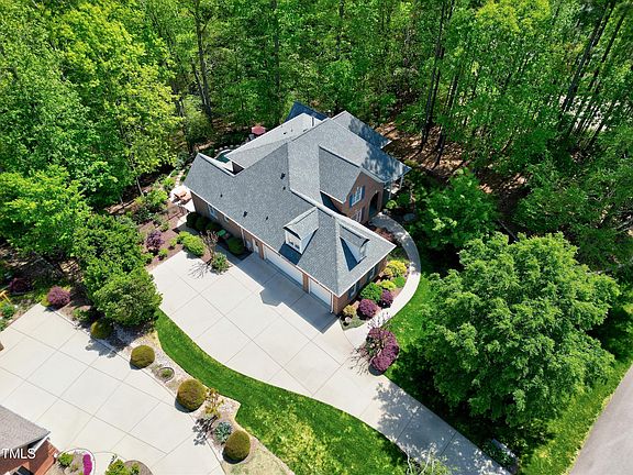 Welcome to 404 Settlecroft Lane — a rare opportunity to own a stunning custom builder's personal residence, showcasing exceptional quality, thoughtful design, and luxurious amenities. Located in the sought-after Brackenridge Pointe neighborhood, this home is perfectly positioned on a generous homesite — a rare find offering the tranquility of nature with the convenience of city services. Step into a truly special setting designed for both relaxation and entertaining. The resort-style backyard is a showstopper, featuring a heated saltwater pool with a waterfall, expansive patio spaces, a covered outdoor bar area, and a conveniently located bathroom by the pool — your private oasis awaits. Inside, the light-filled sunroom offers panoramic views of the pool and serene wooded backdrop — the perfect spot for morning coffee or quiet evenings with nature as your backdrop. This beautifully appointed home features a dramatic two-story foyer, elegant formal dining room, and a private study, ideal for working from home. The first-floor primary suite is a luxurious retreat, with a tray ceiling, custom built-ins, and a spa-like en suite bath featuring dual walk-in closets. The large kitchen impresses with an abundance of cabinetry and counter space, a center island, and a walk-in pantry — all adjacent to the spacious family room with coffered ceiling, custom built-ins, and a cozy fireplace. The additional hearth room, with its stone fireplace, creates the perfect atmosphere for intimate gatherings. Upstairs, you'll find three generously sized bedrooms, each with a private bathroom, plus a spacious bonus room with wet bar — ideal for game nights, media, or hobbies. A walk-in attic offers exceptional storage space. Completing this spectacular home is a true 3-car garage (21.8' x 37.7'), offering room for vehicles, tools, and workspace. Conveniently located 5 minutes from the new I540 highway providing easy access to airport, neighboring towns and amenities.