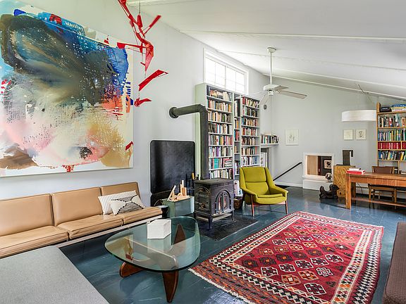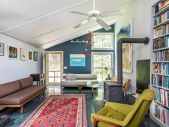 This charming 1800 Greek Revival is located in the picturesque village of West Cornwall. The iconic covered bridge, shops and restaurants are minutes away. The original structure has been modified over the past 2 centuries. The covered porch is more Victorian and was probably added in the late 1800's. It spans the front of the house and wraps around one side. The original parlor and a large remodeled eat-in kitchen are on the main level. The kitchen has access to the wrap-around deck. The floors are lovely wide plank pine. The house was expanded more recently with the addition of a spacious great room with soaring ceiling. It has a wood-burning stove, built-in bookcases and opens to a deck that overlooks the back of the property. On the upper level are 2 bedrooms.