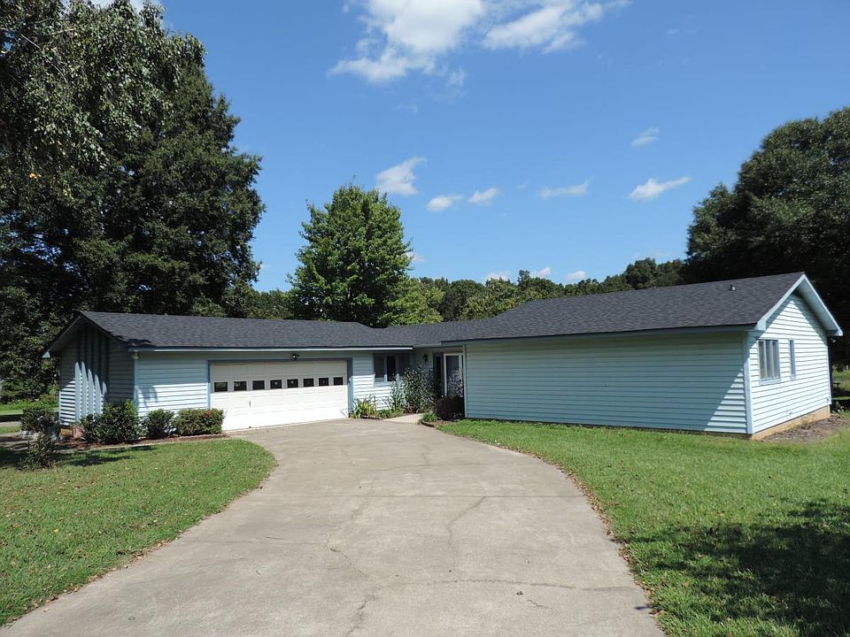 One story Ranch home on nearly 4 Acres! Open spacious floorplan. Master bedroom with en-suite bath. Large secondary BRs. Dining Room. Kitchen with 26" cabinets, breakfast area. plenty of counter space. Family room has sliding door access to deck overlooking the huge back yard. Property includes fruit/pecan trees, blueberries/grapevine. Garage has lots of storage & opens on both sides-can drive through with Circular drive.