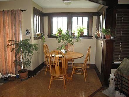 Charming, remodeled, sympathetically updated downtown home. Original wood trim, beams, hardwood floors. Remodeled kitchen in 1985, with cork floor, tiled backsplash, slate countertops and island. Double oversized garage, with private workroom/studio. Nice back yard and wood fencing. Well cared for home within easy walking distance to everything.
