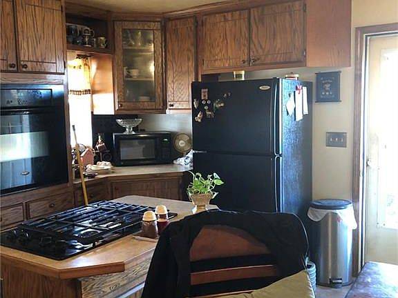 This home has resent upgrades with many great features. Kitchen has built in center island, gas cook top, built in oven, vent hood and dishwasher. Large living room with 2 bedrooms and extra large master bath. It also has a large utility room with closet and freezer space. This home has an approx. 16'x20' insulated, heated shop with connecting covered carport, covered concrete parking for 5th wheel camper, Pontoon boat and 3 auto covered parking. It also has 2 smaller storage buildings. Patio area and fenced back yard for animals. Located on a corner lot close to the school on paved roads..