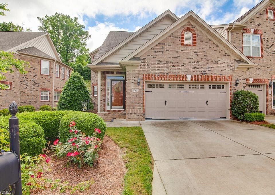 All brick townhouse with 2 car garage and large rear patio. Hardwood throughout 1st floor and stairs. Stainless appliances surrounded by Corian countertops. Custom features include wainscoting, crown molding, chair rails, 9' ceilings, built-in shelving, and recessed lighting. Tray ceiling in main level master suite with spacious bath, tile floors, double vanity, and separate shower. Home warranty is included. Hot tub and master bedroom chandelier do not convey.