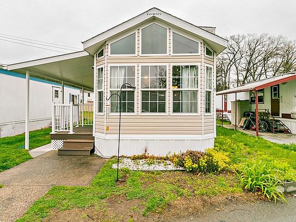NOW ACCEPTING BACK UP OFFERS! Gorgeous windows adorn the front of the living area, and beautiful wooden cabinetry in the kitchen allows for easy storage of utensils, appliances, and more. More windows line the dining area, letting in all that beautiful, natural light. Farther back, find the bathroom with a skylight, a glass door shower, and more cabinet space for toiletries, towels, and more. In the very back, find the bedroom, with even more cabinet space, plenty of windows, and a large mirrored sliding closet. Outside, find a storage shed and space for a garden. A new hot water tank system was installed in 2020. This home has all you need to live comfortably - all that is missing is you!Mobile home can be removed from the park, to be scheduled directly with the mobile home park administration and done by a licensed mobile home moving company.