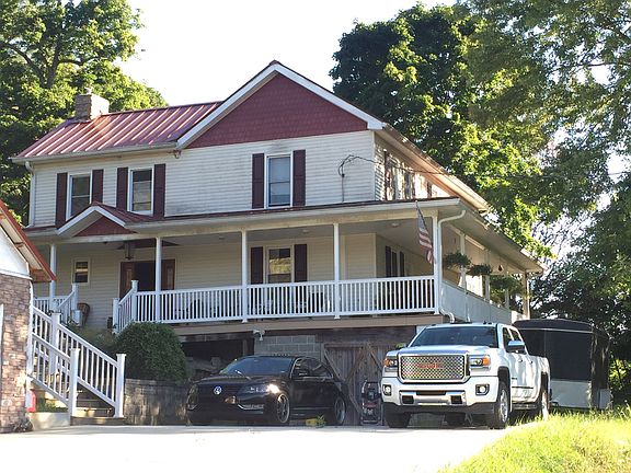 Almost 200 yr old farmhouse with recent remodels and renovations. Comes with 10.8 acres which reside in the middle 100+ acres that we are keeping...so you will never have neighbors! This is a 2200 sq ft "big beam construction" Farm house with wrap-around porch to enjoy the peace and quiet of the valley in which the house sits. The layout of the house includes 2 BD, 2.5 Ba, LR, DR, Foyer, Loft, Laundry/office. Just off of the house is a 240 sq ft "Summer Kitchen" that has been converted to bar. A few feet away from the Summer kitchen is a 240 sq ft "Spring House" where there is a Spring on the ground floor, and an open space above currently used for potting. This 2nd floor would make an excellent guest house if you chose to take on the project. Recently added in the past 5 years is an insulated 720 sq ft poured concrete 3-car garage with PEX lines already added in the concrete. Above the garage is 260 sq ft of unfinished office/storage space, ready for your finishing touches. A 3000 sq ft concrete driveway (poured in the past 4 yrs) leads up to the garage and house, with parking enough for 8-9 cars at least. There are three (3) 180 yr old barns still standing on the property which may or may not be included in the sale. Many of the biggest ticket items have been completed during the complete renovation/restoration/updating from 2002-2007, including having a new well drilled, pump, pressure tank and whole house filtration, tankless hot water, new additional 500 gallon septic tank added and new leech field installed, every window has been replaced with dual pane double hung, new 200 amp service, new standing seam metal roof, new furnace in 2015 (The home never had a furnace until 2015)...it was only heated with a woodburning stove. Quality completions over the years that come with the house are stainless appliances include fridge, dishwasher, double oven gas stove, microwave. Cabinets in the kitchen are Solid Hickory real wood cabinets with mortise & tenon joinery. Barnwood floors throughout first floor and porcelain tile in bathroom & laundry. The large Master suite, which is half of the entire second floor, comes with an en-suite including a custom 2-person shower and custom finished walk-in closet. The vinyl covered aluminum railings & recycled plastic tongue & groove decking on the beautiful wrap- around porch are low maintenance, so you have more time to enjoy the solitude of the country. Included with the house is a Vermont Castings "Defiant" wood burning stove that can heat the entire house if you choose, and the new furnace can be used as a back up. The 3 Heated ceiling fans with remote controls/thermostat can also move air around efficiently. The laundry area includes Kenmore high efficiency front load washer & dryer, and the chute comes straight down from the master closet.