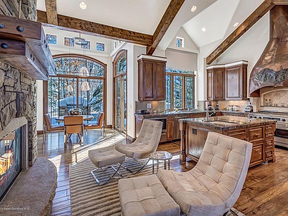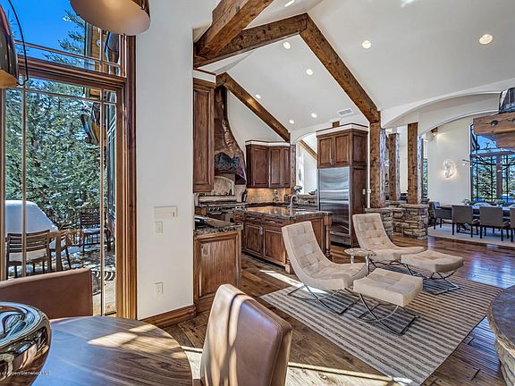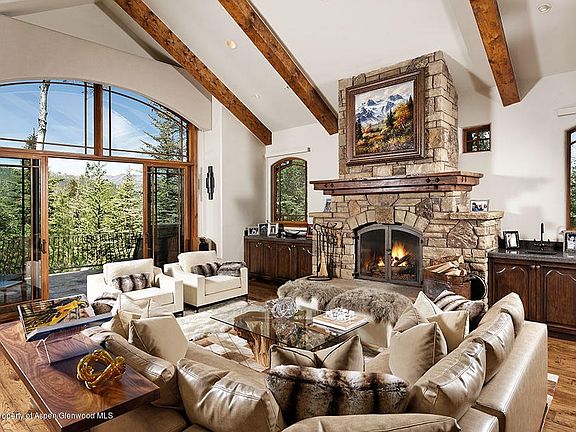 This newly updated/decorated home with air conditioning enjoys direct ski in/ski out access, with unsurpassed elegance and craftsmanship. Situated in a serene, private setting bordering open space with large aspen trees, this home captures exceptional mountain views of the Snowmass Ski Area and valley below. A true Jim Benson masterpiece, the estate features an 1870's original bar from Leadville, CO, a large gourmet kitchen, 5 bed, 5 & 2 half-baths, office, 9 fireplaces, expansive media room and wine cellar. This Luxury home is surrounded by expansive snow melt stone decks and patios with a stone surrounded spa and waterfall/pond feature for your outdoor entertainment. 2021-07-19