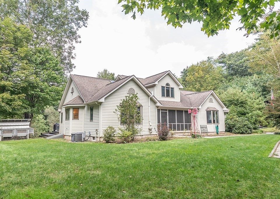 This custom built home with an in-law apartment has been designed with ease of living and relaxing in mind! The eat-in kitchen is equipped with a Viking stove, granite countertops & pantry w/extra sink and lots of storage! You will love the spacious first floor main bedroom w/walk-in closet, French doors leading to a deck & beautifully updated main bath with soaker tub. Large open concept living & dining area is perfect for entertaining. Spend time on the 3 season sunporch facing your private oasis in the backyard or enjoy the warmth and ambience of the centrally located fireplace that acts as a wood burning stove to heat the house during winter months. Set on over 4 acres, there is plenty of privacy but with easy access to major routes and the center of Belchertown! Washer & Dryer hookups in the updated basement laundry room & on the 1st floor, cold storage & bonus room in basement, 3 car garage, sprinkler system, HardiePlank siding, enclosed front porch! Check out the virtual tour!