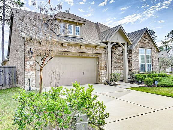 Step into this bright and beautiful 1-story home on a corner lot in a quiet cul-de-sac in The Woodlands Hills, offering 3 bedrooms, 3.5 bathrooms, formal dining, and a private study. The open-concept kitchen anchors the home with an oversized island and breakfast bar, granite countertops, striking dark herringbone tile backsplash, ample cabinetry and counter space, pantry, and a sunny breakfast room. The primary suite features a spa-inspired bath, showcasing dual vanities with generous storage, a drop-in soaking tub, a separate shower, and a spacious walk-in closet. Relax outside on a covered patio, expansive fenced backyard, and side yard, ideal for play, gatherings, or future enhancements. Enjoy resort-style amenities including swimming pools, trails, and recreational spaces. Conveniently located near shopping, dining, and The Woodlands, this home offers comfort and elevated everyday living, perfect for those seeking luxury, space, and a vibrant community lifestyle.