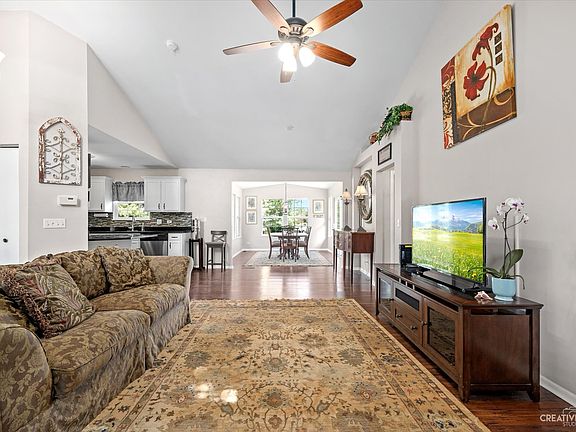 Welcome to your new home! This turn-key, updated ranch is ready for you to move in. Located in the desirable Highlands of Ogden Falls subdivision, this home is tucked away in a quiet court with only four other homes. With a fully fenced in backyard that abuts to a greenway space, this home's location exudes tranquility and seclusion from the hustle and bustle. Immediately upon approaching this home, the quaint front porch welcomes you inside. Once in, you are greeted with an open-concept floor plan and vaulted ceilings. Natural light streaming in from the sunroom opens the space up even more. Beautiful hardwood flooring is throughout. The updated kitchen functions very efficiently and opens to a space for a dining table. On the other end of the kitchen, there is a cozy mudroom spot for a bench to drop packages or remove shoes when coming in from the garage. The large primary bedroom is the perfect personal oasis with vaulted ceilings, natural light, and double closets leading to the primary bath. Getting in and out of the shower is easier with the low-threshold shower curb. Currently being used as a home office, the second bedroom has much potential. It could be utilized as the ideal media room, hobby space, nursery, or any need. A full size second bath is adjacent to the this room. The large sunroom is presently being used as the dining area and provides additional room for entertaining or just about any use you have need for. This home also has a full basement that offers even more storage or living space. Moving outdoors through the sunroom sliding doors is the roomy patio, at the same level as the sunroom, so there are no stairs to traverse to enjoy being outside. The expansive, private backyard is another sanctuary this home offers for your enjoyment. Whether its entertaining, retreating to nature, sipping coffee, or letting the dog run free, this enticing yard is loaded with functionality and purpose. This home and property have so many fantastic amenities, you must come see it for yourself!