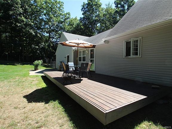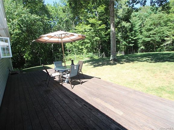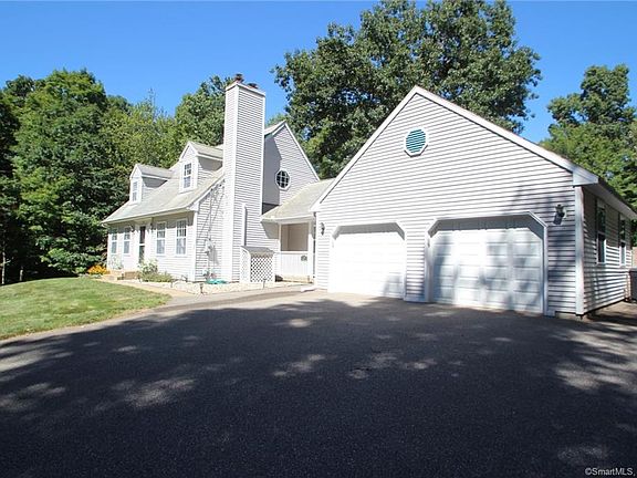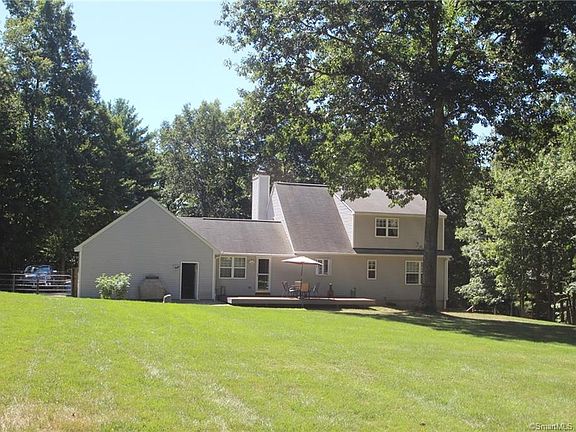 COUNTRY LIVING AT ITS BEST, featuring 7+ acres of level and partially fenced in area. Just 5 minutes from highway for great commuting to Hartford and shopping areas, just 15 minutes to Uconn. Shows just like new, gleaming new wood floors in most rooms, remodeled kitchen with new backsplash, new stainless appliances, hardware, open to a great-room with cathedral ceilings and exposed beams. Nice dining room area , with access to a large 28x12 deck and additional patio area. 2 bedrooms with good closet space on first floor with a remodeled bathroom with new counter-tops, plumbing + light fixtures and tile floor. On second floor a nice master with huge walk-in closet and large bathroom with soaking tub, walk-in shower, large vanity and tile floors. Loft area that can be a perfect study, office or just a peaceful reading spot overlooking the great-room area. Walkout lower level is partially finished with all around heat, and ready for your final touches, currently used for additional media area and exercise equipolente. additional dry storage on crawl space, full size windows for natural light and access to yard through double doors. Recent improvements: wood floors, heating , paint, new carpet on second floor, new screen door, kitchen remodeling, garage door, most house doors, split air/heat ductless system, ceiling fans, remodeled baths, basement heat, garage doors with key less entry and openers, garage paint on ceilings and walls, patio door, 2 sheds and much more.