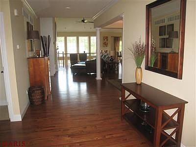 Exquisite Atrium Ranch! Custom built by Manlin Homes, this 4 bedroom BEAUTY is loaded with upscale amenities. Brick & stone facade, fresh landscaping + 3car garage = Great Curb Appeal! Premium wood floors throughout mn lvl living areas; 42in cabinets and gourmet countertops, built-in bookcases, custom millwork, coffers, vaults, architectural details & luxury appointments surround you at every turn. Light, bright, open plan with 1000+ sq. ft. prof. finished atrium LL offering Family Room w/wet bar, 4th bedroom (above grade with full window), 3rd luxury bath, & office/den. A trex deck overlooks the exposed aggregate patio, & manicured lawn complete w/sprinkler system. Compare this gorgeous home to new construction- more upgrades, & shows better than a display! Experience the lifestyle of this small Tuscan Village of distinctive homes, conveniently located minutes from St. Louis County across Hwy 364, & near the Katy Trail! One yr AHS Warranty. Your search is over for the perfect house!
