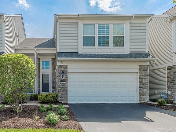 Desirable Prescott Mill townhome with a front row pond view you can enjoy while sitting on your back patio with a cup of coffee in the morning or just relaxing for the evening!! Meticulously kept, this 2 bedroom with a loft, 2-1/2 bath home is move in ready!! Beautiful hardwood floors in the foyer and kitchen/powder room, a nice sized pantry that adds plenty of storage, and a new deep stainless sink, faucet and garbage disposal are all features you'll love on the main floor! An open/eat-in kitchen allows for conversation to flow as meals are prepared. Huge master suite has a nice sized WIC and bath with an oversized walk in shower! Laundry conveniently located on the second floor, so no hauling baskets up and down the stairs! Overhead garage storage rack stays. Association replaced roof in November 2019! Close to schools and convenient to Route 34 where you will find plenty of shopping and restaurants to suit your needs! Make an appointment today so you can call this gem HOME!