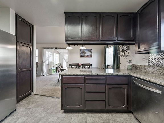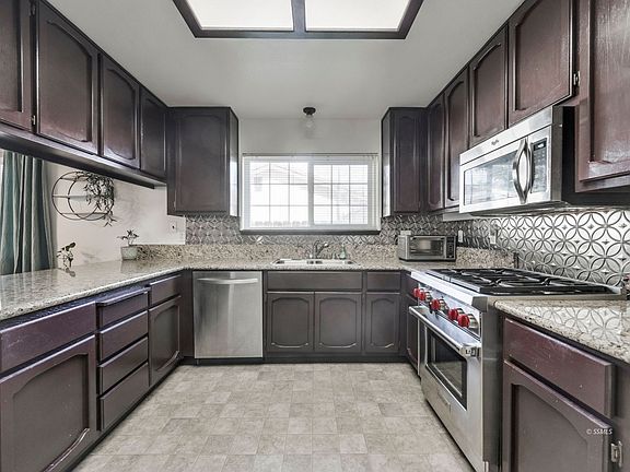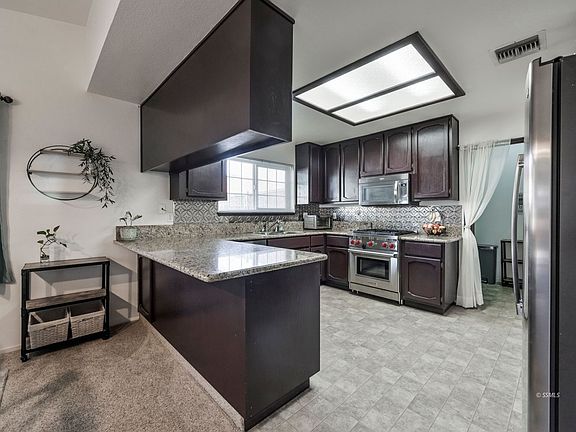 Beautiful, open floor plan, 3 bedrooms, 2 bath home with much curb appeal. This home has a tile roof with lush front yard landscaping, stucco & rock exterior. Owned Solar. Large living room with high ceilings and wood burning fireplace. Open dining room into great size kitchen. Kitchen features granite counters, stainless appliances and tin backsplash. HUGE indoor laundry. Primary bedroom with tall ceilings, walk in closet and window shelf. Enclosed patio is perfect for a sunroom or playroom. Backyard has grass, trees and a garden area. Great location - Great house.