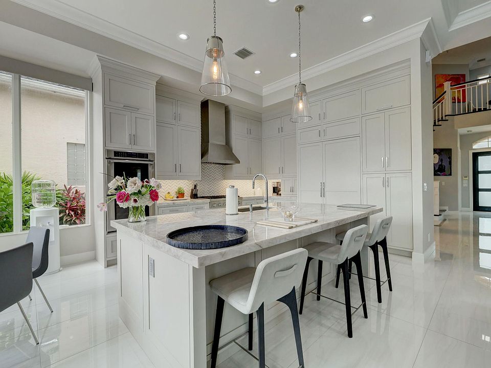 Rarely do you find a home that was completely renovated inside and out, with new porcelain flooring, transitional style wall and floor moldings, new flat panel doors; redesigned wood stairway with hardwood planks and upgraded carpet runner; Fully redesigned custom kitchen with top-of-the line appliances. Travertine marble pool decking, motorized screening, summer kitchen and more. Golf membership.
