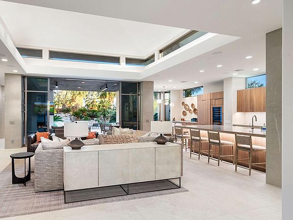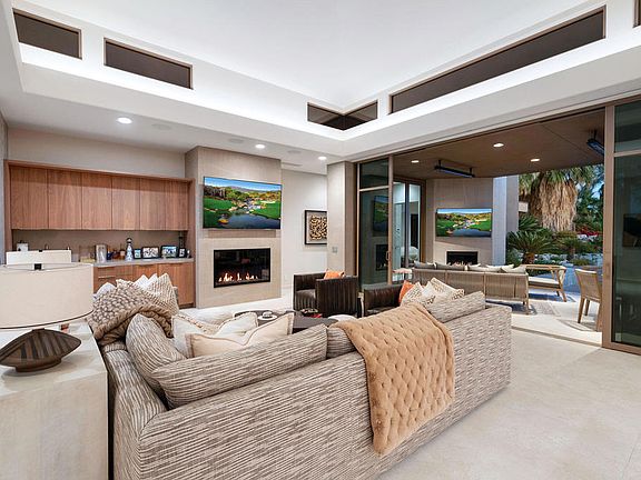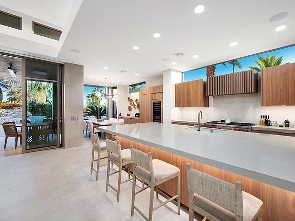 Seller reserves right to leaseback for 2024 season.Lushly landscpaed courtyard entry leads to completly remodeled contemporary home. Great room w/access to outdoor lving. Gourmet kitchen with large center island and Wolf appliances. Natural rock waterfall cascades into pool, spa w/plenty of deck space. Outdoor kitchen w/pizza oven, bbq center, since & refrigerator. Panoramic mountain views w/plenty of privacy. Custom renovated master bath featuring full size vanities, his/her walk-in closet, walk-in shower and soaking tub. Two car plus golf cart garage. Oversized lot....