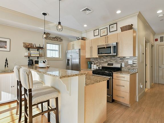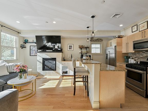 Discover South Boston living at its finest in this sun-drenched condo with a 360 square foot 2-car tandem separately deeded heated garage parking with storage and private outdoor space. Located in a prime West Side/Seaport location, this beautifully designed home offers an open-concept living and dining area with a gas fireplace and gleaming hardwood floors. The gourmet gas kitchen features custom cabinetry, granite countertops, and an oversized breakfast bar, perfect for entertaining. Both bedrooms are generously sized, offering ample storage, while the custom-designed tiled baths provide a luxurious retreat. Outside, enjoy your private deck, ideal for relaxing or hosting guests. Additional highlights include a low condo fee, central air conditioning, in-unit laundry, and extra storage. With easy access to major routes, public transportation, and the best of South Boston & Seaport dining, shopping, and nightlife, this home offers the perfect blend of convenience and style.