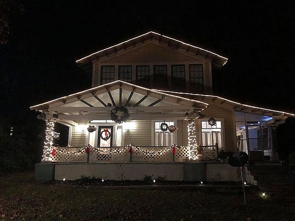This Colonial house was built in 1921 and has so many custom features…hexagon shaped Russian Birdseye maple hardwood floors in the majority of the downstairs, new roof (2018), new electrical upstairs (2018), new electrical panel downstairs (2018), custom built cabinets with copper inlays in the kitchen, custom built ins in the living room, amazing grand staircase in the foyer that has double doors, updated kitchen (tiled back splash, double farmhouse porcelain sink, new pull down faucet (2024), amazing views from the many windows custom built bookshelf upstairs, and throughout the house. The downstairs has an office and one large bedroom, a formal dining room, a small pantry in the kitchen and a walkthrough pantry as well as an unfinished root cellar & a full bathroom that has an updated rolled countertop, shower head & flooring . The upstairs has four bedrooms that boasts a massive master suite. The carpet has recently been removed from the upstairs hallway and master suite, exposing the 100+ year old hardwood floors that have been painstakingly refinished. The backyard was fenced in 2020 with an arbor that leads to the massive workshop and a pergola off the large back porch with a custom built fire pit. The workshop has electricity and built in cabinetry as well as what appears to be a bar area. It could easily be converted into a mother-in-law suite or an apartment for extra income. The front yard has a koi pond & an adorable “gnome home”. The side porch is screened in with a ceiling fan. There’s a custom built corner bench that can be opened for plants or left for seating by the screened aide door. Between the house and the workshop is a large paved parking area surrounded in two sides by hand laid iron ore boulders that are cemented into place approximately 100 years ago. In 2022 we added the paver pathway from the side stairs to the parking area and from the parking area to the workshop as well as from the work shop to the back fence gate. The pathway from the interior of the back yard was discovered after we moved in and we assume it was put in around the same time as the retaining walls.