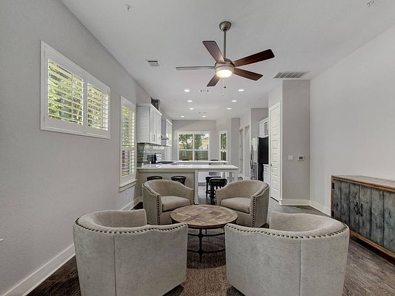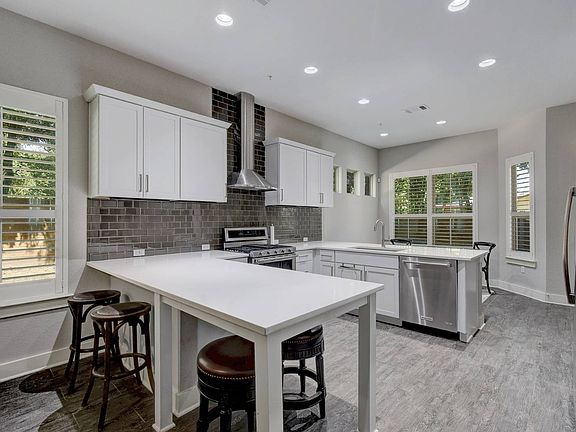 Welcome to The Alpine Austin! Luxury & lifestyle create a remarkable living experience. With thoughtful design & ideal location, this 3 bed/3.5 bath detached townhome is exceptional. With a private back yard and entry, modern finishes & 2 master suites, 1 up & 1 down! Stunning silestone counters, tiled backsplash, wood floors and Kitchen Aid appliances. Bathroom suites, seamless glass shower & tiling flooring. Plantation shutters throughout and sweeping view of trees from balconies, dining and master.