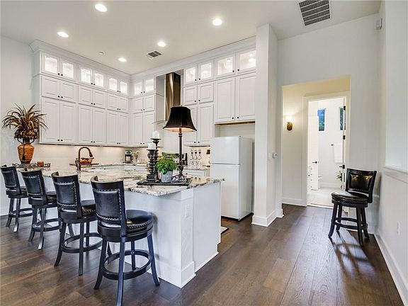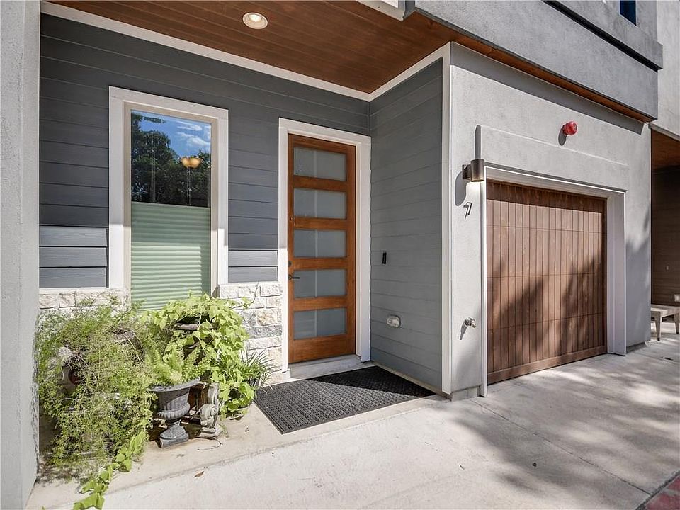Stunning recent construction minutes to DT & SoCo. Meticulously upgraded & enhanced by seller! Over $60,000 in upgrades. None other like it! This corner unit lives like a single family home without the upkeep. Well placed windows allows privacy & natural light providing a tree house feel w/ a balcony off the living. Enjoy the majestic oaks from the back deck & private fenced backyard. Gleaming oiled wood floors throughout. WOW kitchen features a large center island with quartz, onyk and amber & seats 6. Cabinets extend to ceiling with lighted glass front cabinets. Second living is an ideal office. Extra storage in garage. Guest parking next to home. If you are looking for something special this is it.