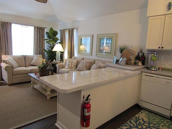 Location, Location! & Priced right!!! This 2 Bedroom 2 Bath, top floor, condo is conveniently located close to Schooner Island Marina district, restaurants, shopping and the beach and fun filled boardwalk.This unit offers an open floor plan with a spacious living area and dining area. Vaulted ceilings allow a lot of natural light. The rooms all have been freshly painted and new carpets and new hardwood flooring have been installed. The kitchen boasts a new back splash with quartz kitchen counters and a beautiful marble island. There is a nice size master bedroom with en suite bathroom and an additional guest bedroom with a hallway bath. Both rooms have good size closets. A laundry closet with washer/dryer is included for your convenience. With gas natural heat and central air, you can comfortably use this unit year round. You can enjoy your morning coffee or sip your favorite cocktail on your own private deck. The unit is being sold fully furnished but not as seen. (will explain). Make a appointment now because this property will not last.