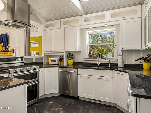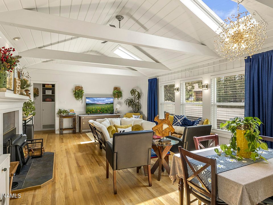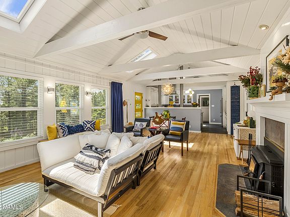 Beautifully bright and charming, you won't find anything like this one! Every aspect of the home is artistically crafted from original repurposed and sustainable local sourced materials while adhering to Wellness Design. All of this less than a mile from Downtown Flagstaff, and close proximity to Arizona Snowbowl. Perfect as a primary, secondary, or turn-key short term rental with the option of being fully furnished. The modern split floorplan is highlighted by vaulted tongue and groove ceilings, and a resort style primary en-suite with a picturesque sitting area. The exterior is comprised of both front and back composite decking, multiple entertaining spaces, and an RV gate. Additionally the home features a newer roof, windows, plumbing, electrical and EV charging to name a few
