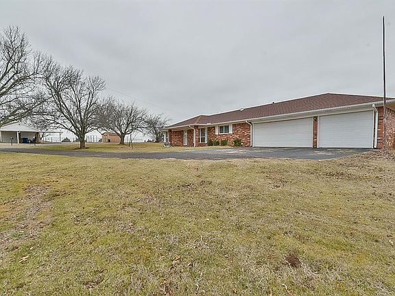 Discover the perfect blend of comfort and functionality in this 3 bed, 2 bath home, nestled on 4 acres of serene countryside. 2 of the acres is completely fenced, offering ample space for pets, or recreational use. Step inside to find a remodeled kitchen with lots of counter space. The home boasts extra cabinetry and storage throughout home. Relax in the cozy living room featuring a wood burning fireplace, perfect for chilly days. Enjoy year round outdoor living with an enclosed patio. Give yourself peace of mind with a storm shelter. The property is equipped with solar panels helping you save on energy costs, which the seller will pay off at closing. Additional highlights include a well and septic, a newer roof and no HOA restrictions. Home also offers a Generac and a gas log fireplace
