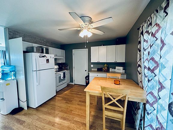 - Ceiling Fan(s), Laminate Counters, Countertops-Solid Surf, Stone Counters, Eat-in Kitchen, Tub/Shower Combination