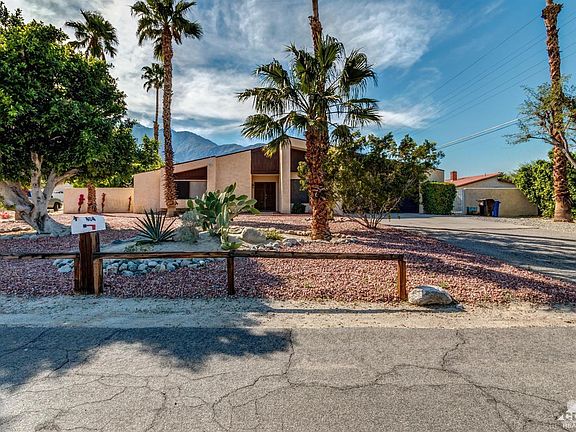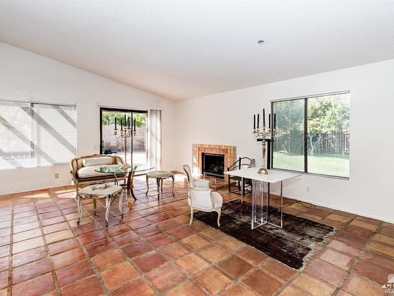 Great neighborhood with a rural feel.This home sits on a large corner lot with beautiful mountain views, you can even see the tram! Saltillo Tile floors in the main living area. Cathedral ceilings and fireplace in Living Room. Private backyard is great for entertaining with a pool and spa, and a large grassy area with a number of fruit trees. In addition to the living room, you can access the pool from the Master Bedroom. Large front yard has been recently been relandscaped. Attached 2 car garage with large driveway. This is great a great full time residence or seasonal rental/weekend getaway.