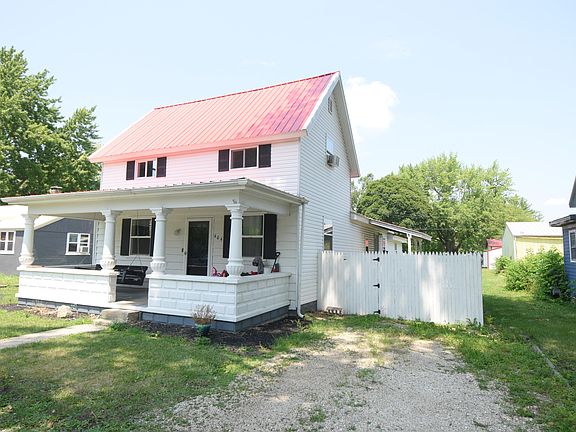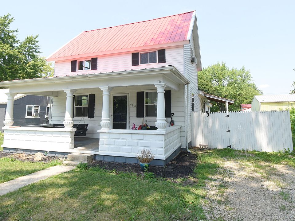 Welcome to your new home! This 4 bdrm, 1 1/2 story home has so much to offer starting with it's charming, covered front porch with a swing perfect for relaxing at the end of the day. Inside you'll find a spacious living room, a den/office providing a space for work or study, and a spacious eat-in kitchen providing the perfect space for meals and gatherings. The primary bedroom and 2nd bedroom are on the main floor as well as the bathroom and laundry area. Upstairs are 2 generous sized bedrooms. Off the kitchen, is a covered side porch leading you to the privacy-fenced back yard! The property also includes a 1-car detached garage with additional storage space, ensuring you have plenty of room for all your belongings. Conveniently located in Brook just off of SR 16, with easy access to SR 41 and US Hwy 231, as well as I-65.