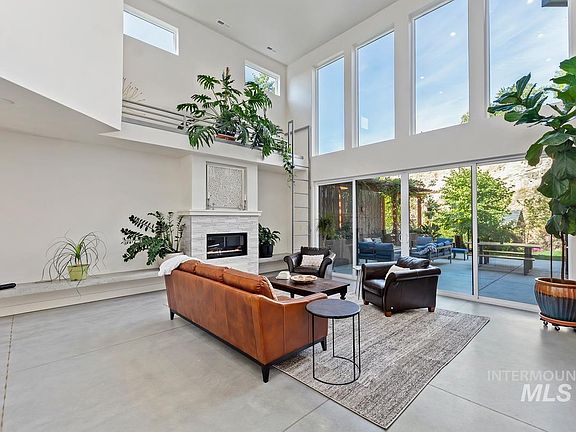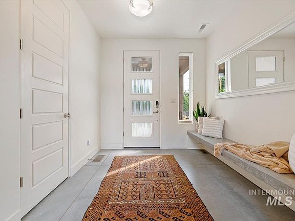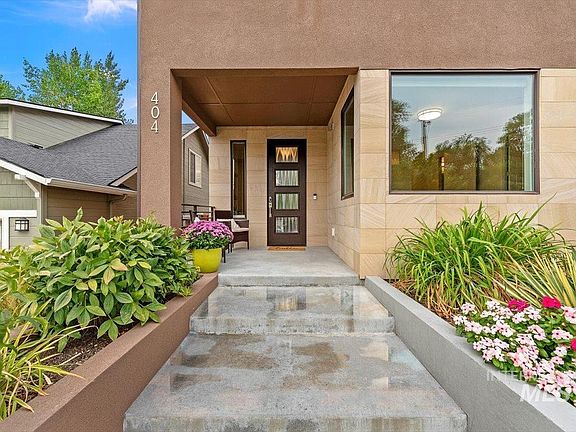 A rare opportunity to own a custom-designed modern home in the North End on a quiet dead-end street. It is situated on a large private lot (.20 acres) within walking distance to Boise's best schools, Hyde Park, and Camel's Back Park. Convenient acess to foothills trails, just blocks away. This 4-bedroom, 4-bath, 3-car garage home is super energy efficient, with a 21-panel, 6.3 kW solar array, radiant floor heat, and EV charger. The professionally landscaped backyard has a hot tub and a 10' X 12' fully-insulated shed with power. The exterior of the house is entirely stucco and natural sandstone. Soaring windows, sliding doors, and a roll-up window open onto a large private patio with a gas fireplace for exceptional outdoor entertaining.