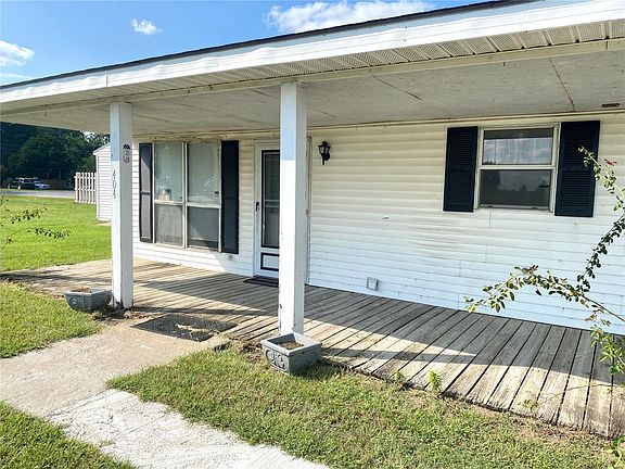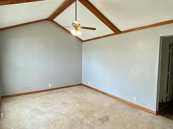 This home is much larger than it looks from the outside! The first room upon entering has a vaulted ceiling, wood beams, and plenty of natural light. It can be used either as a living room, or a dining room, as it connects with the kitchen. The stainless stove/oven and refrigerator are included. The home has a split bedroom floor plan with two bedrooms and the bathroom on one side of the house, and another bedroom on the opposite side. There is an additional room that could easily make a fourth bedroom, if desired, or a spacious living room. The property includes a storage shed. It has easy access to I-57 and I-55, for those who like to travel.