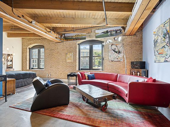 Urban 1 bed, 1 bath condo in the North Loop, boasts 12 foot ceilings with views of Downtown. Beautiful Concrete Floors, Stainless Steel Appliances, in unit full size Washer/Dryer. Flex room can be used for extra storage, a workshop or office. Granite Countertops with additional space for bar seating. Property includes one large prime location heated garage space for easy access to the elevator. Amenities include incredible fitness center, rooftop patio, and a community room. Enjoy easy access to the Mpls Greenway, Whole Foods and everything that the North Loop and Downtown Minneapolis has to offer. Train track and set does not stay with the home.