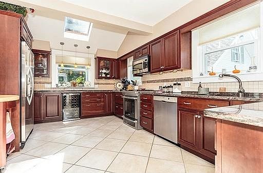 More than meets the eye, this surprisingly spacious and thoughtfully expanded home is sure to please the most discerning tastes inside and out. The renovated skylit cherry and granite kitchen expertly designed features a dual fuel Eelctrolux range, Bosch dishwasher, wine fridge, window box, pendant lighting and more. Andersen sliders from the dining room and step down family room lead to a composite deck and stone patio perfect for entertaining, or just relaxing in your private backyard oasis. All three bathrooms have been extensively renovated. Other special features include two staircases, built-in china hutch, exposed brick, wood burning stove, gas fireplace, half round windows and more. Move-in ready and quick closing possible, this one of a kind masterpiece is waiting for you.
